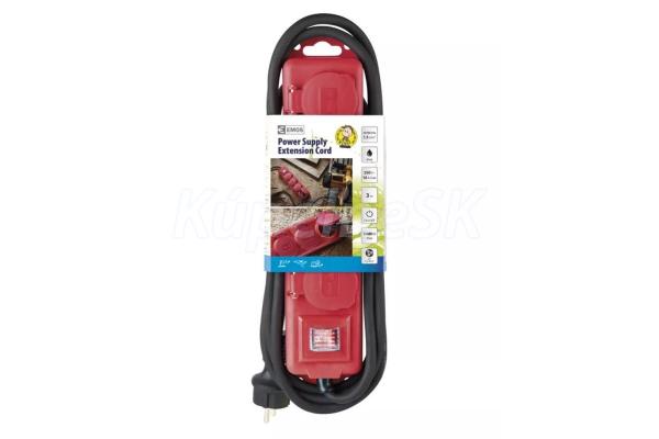 EMOS Predlžovací kábel, 3 m / 250 V, 4 zásuvky, červený 82P14131