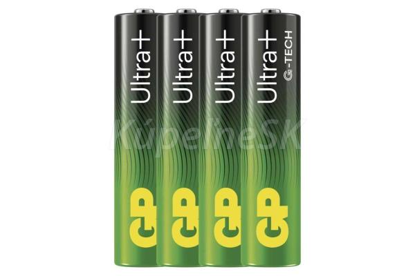 baterie GP Ultra Plus LR03 AAA, blistr LR03 (mikrotužka, AAA)1,5 V průměr 10,5 x 44,5 mm prodejní obal: 4 ks, blistr