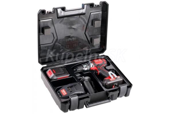 • v praktickej súprave v kufríku sa okrem AKU vŕtačky nachádza aj - akumulátor 4,0 Ah, akumulátor 2,0 Ah, rýchlonabíjačka 2,4 A, prídavná rukoväť