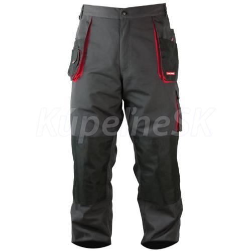 kombinéza LPSR01 sivá 65% polyester, 35% bavlna, hmotnosť 267 g/m 9 vreciek vrátane 6 so zapínaním na suchý zips vrecko na mobilný telefón trojité švy nastavenie šírky v páse pomocou gombíkov krúžok na kľúče popruh pre kladivo