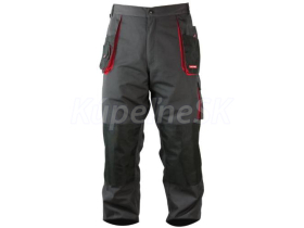 kombinéza LPSR01 sivá 65% polyester, 35% bavlna, hmotnosť 267 g/m 9 vreciek vrátane 6 so zapínaním na suchý zips vrecko na mobilný telefón trojité švy nastavenie šírky v páse pomocou gombíkov krúžok na kľúče popruh pre kladivo