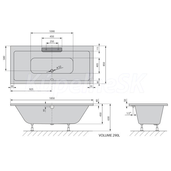 Polysan CASCATA obdĺžniková vaňa 185x85x45cm, kaskáda nerez