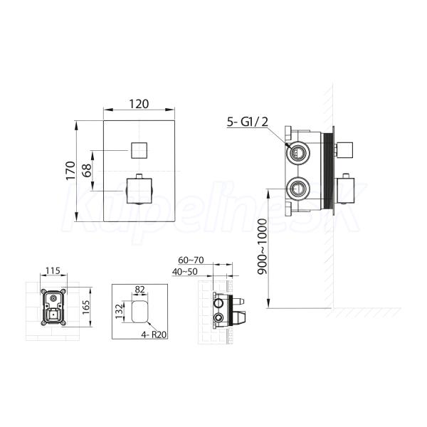 >> Batérie vodovodné >> Sprchové batérie >> Sapho Podomietková sprchová termostatická batéria, box, 3 výstupy, chróm