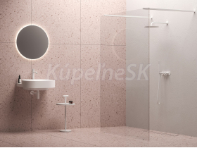 Sprchový kút Walk-In Free tvorí tvrdené bezpečnostné sklo o hrúbke 8 mm. Stabilitu výrobku zabezpečujú dve kovové vzpery, ktoré určujú šírku otvoreného vstupu z dvoch strán. Sprchový kút Walk-In Free s bielou povrchovou úpravou kovových častí. Odporúčame inštalovať priamo na podlahu so zabudovaným odtokovým žľabom alebo podlahovým vpustom. Prvé balenie obsahuje pevnú sklenenú stenu. Druhé a tretie balenie obsahujú podpery a kovové vzpery v bielom vyhotovení, ktoré určujú šírku vstupu. Univerzálny W SET-Uni Free/Wall s dĺžkou vzpery 120 cm možno ľubovoľne skrátiť podľa požadovanej šírky vstupu. Vzpery sa pri stene zakončujú kovovou koncovkou, ktorá zakryje rez.