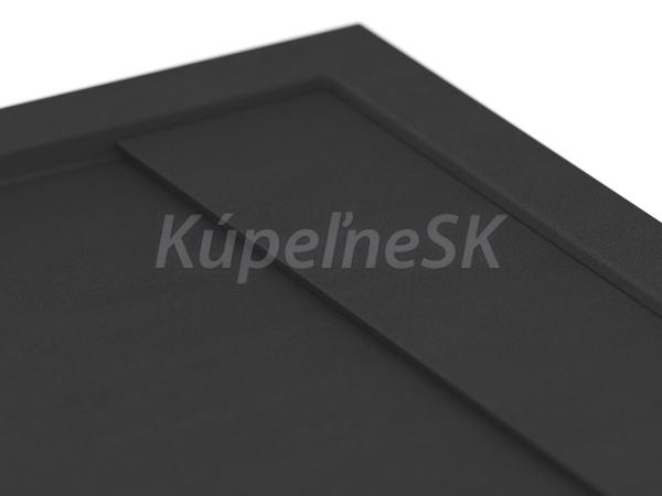 Obdĺžniková sprchová vanička Sandstone Pro z odľahčeného liateho mramoru s akrylovým polyuretánovým nástrekom. Ľahko zdrsnený povrch imitujúci štukovú omietku. V čiernej matnej farbe.