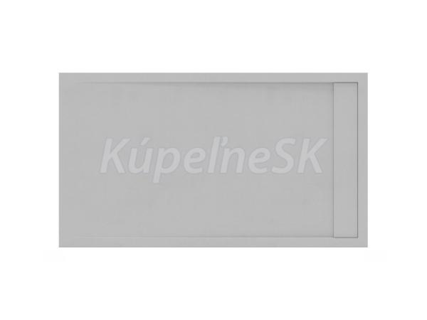 Obdĺžniková sprchová vanička Sandstone Pro z odľahčeného liateho mramoru s akrylovým polyuretánovým nástrekom. Ľahko zdrsnený povrch imitujúci štukovú omietku. Vo farebnom vyhotovení Smoke Grey.