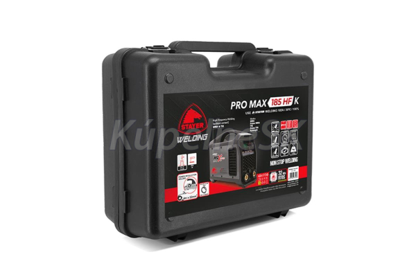 invertorová MMA svářečka PRO MAX 185 HF K, STAYER zařízení pro svařování vysokofrekvenční elektrodou součástí je držák elektrod s regulátorem výkonu a regulací vysoké frekvence v režimech 2T / 4T možnosti svařování s pulzní, synergickou a normální obal