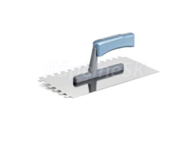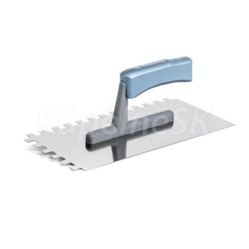 Stierka z nehrdzavejúcej ocele 270 x 130 mm - zub buk, lakovaná, ergonomická rukoväť z nehrdzavejúcej ocele, hrúbka plechu odolná voči kyselinám. 0,7 mm nanášanie lepidiel, veľkosť zubov úmerná veľkosti dlaždíc