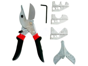 Nožnice na PVC pásy tvrdená čepeľ s vymeniteľnými čeľusťami určené pre PVC koľajnice s nastaviteľnými uhlami rezu ergonomická rukoväť