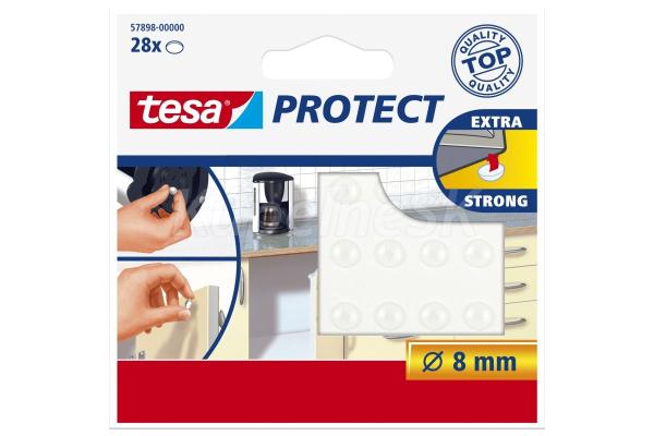 ochranné/protišmykové podložky tesa® Protect zníženie hluku pri zatváraní dverí alebo zásuviek zabraňuje skĺznutiu a pohybu predmetov chráni povrchy pred poškriabaním samolepiace Rozmery: približne 8 mm farba: transparentná materiál: etylén kopolymér obsah balenia výrobku: 28 ks