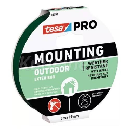 - Montážna páska tesa PRO Outdoor urýchľuje a uľahčuje remeselníkom prácu v exteriéri. Vďaka spoľahlivej a účinnej lepiacej sile dokonale priľne k náročným povrchom (dlaždice, tehly, kov, tvrdé plasty). Vďaka tomu môžete svojim zákazníkom ponúknuť trvalé a bezpečné upevnenie dôležitých predmetov (poštové schránky, čísla na domoch) pomocou pásky odolnej voči UV žiareniu, vlhkosti a extrémnym teplotám.