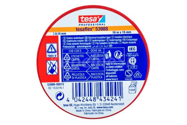 TESA Elektroizolačná páska PVC 53988, IEC, 10 m x 15 mm, červená