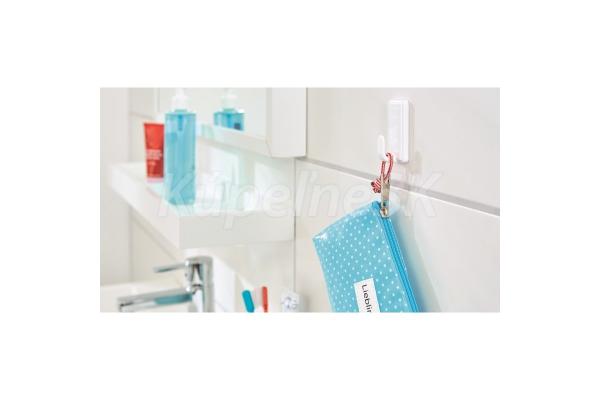 Univerzálne samolepiace háčiky tesa Powerstrips® - obdĺžnikové vyrobené z vysokokvalitného plastu na použitie v kúpeľni alebo kuchyni na zavesenie kozmetiky a nástrojov priamo v sprche alebo v blízkosti vane na opakované použitie s malými páskami tesa Powerstrips® Odstrániteľné bez zanechania stôp vďaka technológii Powerstrips® vhodné na použitie na dlaždice, sklo, drevo, plast a rôzne iné povrchy (nevhodné na použitie na polystyrén, penové materiály, nepriľnavé povrchy, porézne materiály) Materiál: PS (polystyrén) farba: chróm rozmery: 58,3 mm x 22,3 mm x 28,0 mm balenie obsahuje: 2 háčiky / 4 prúžky prídržná sila: 2 kg