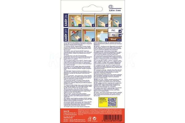 tesa® Insect Stop Náhradní role suchého zipu Pro sítě COMFORT jedinečný samolepicí suchý zip lze odstranit z většiny povrchů (hliník, PVC a pevné dřevěné povrchy) bez zanechání stop rozměry: 5,60 m x 0,90 mm materiál: polyamid barva: bílá balení: obě s