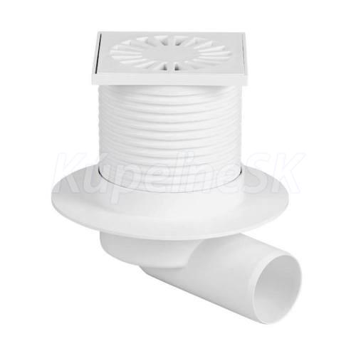 POUŽITIE: Na odvádzanie vody vo vnútri budov. MATERIÁL:Polypropylén PRÍSLUŠENSTVO Mriežka, uzáver s nízkym zápachom, tesniaci krúžok. Výškovo nastaviteľný nadstavec s mriežkou, horizontálny odtok DN 50. Trieda zaťaženia K3 - 300 kg Odolnosť do 90 °C Štandard
