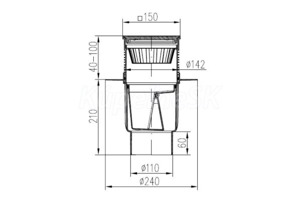 - Kanalizačná vpusť so suchou zápachovou klapkou je vhodná na inštaláciu v oblastiach, ktoré sú v priamom kontakte s asfaltovým povrchom.