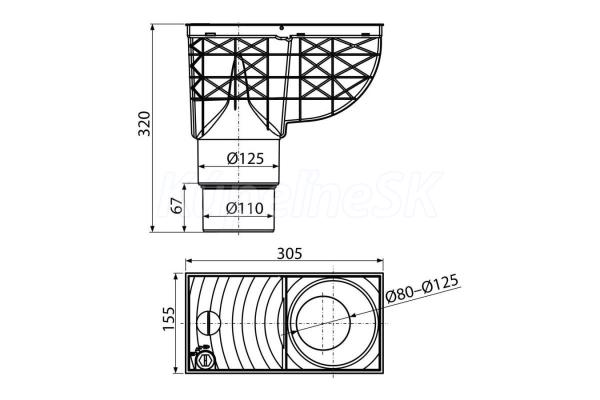 - Odtok: priemer 125/110 mm