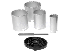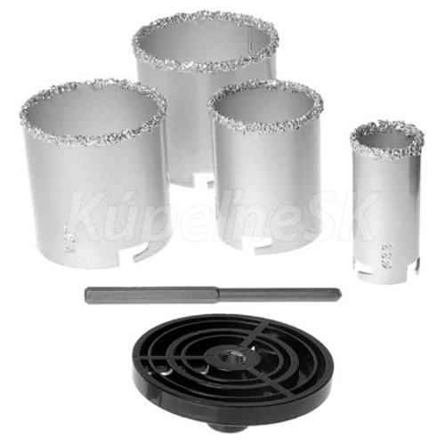 korunka - sada 6 kusov korunka s karbidovým hrotom na čisté a presné vŕtanie Priemery korunky: 33; 53; 67; 73 mm univerzálny nosič ALU špeciálny vodiaci vrták