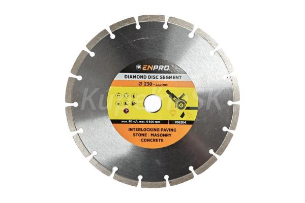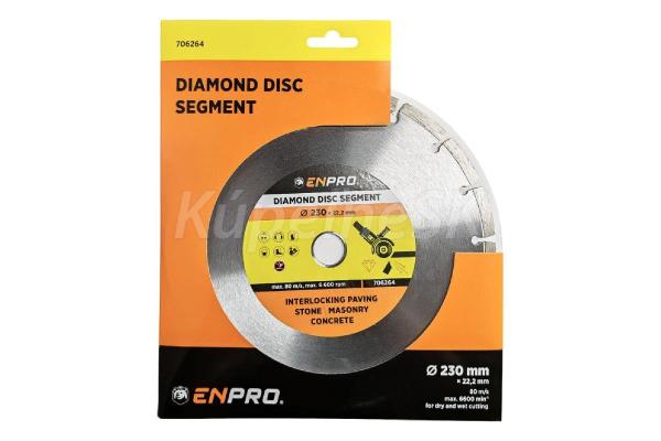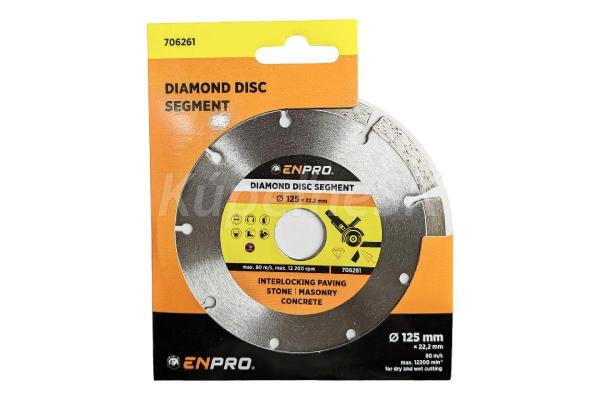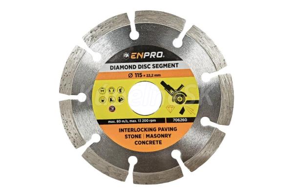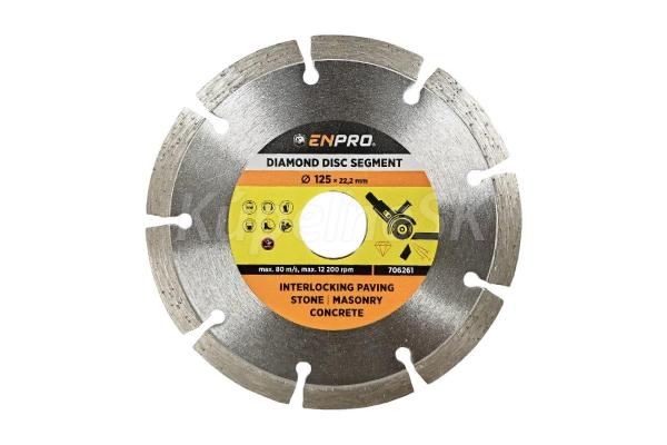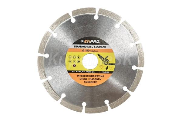 diamantové kotúče prémiovej značky ENPRO, ktorá je zárukou profesionálnej kvality Disky ENPRO sa vyznačujú predovšetkým vysokou kvalitou použitého materiálu a dlhou životnosťou Certifikácia MPA segmentové kotúče sú vhodné na pevnejšie materiály, ako sú: kameň, murivo, betón, zámková dlažba, žula, mramor vhodné na rezanie za sucha aj za mokra priemer otvoru: 22,2 mm