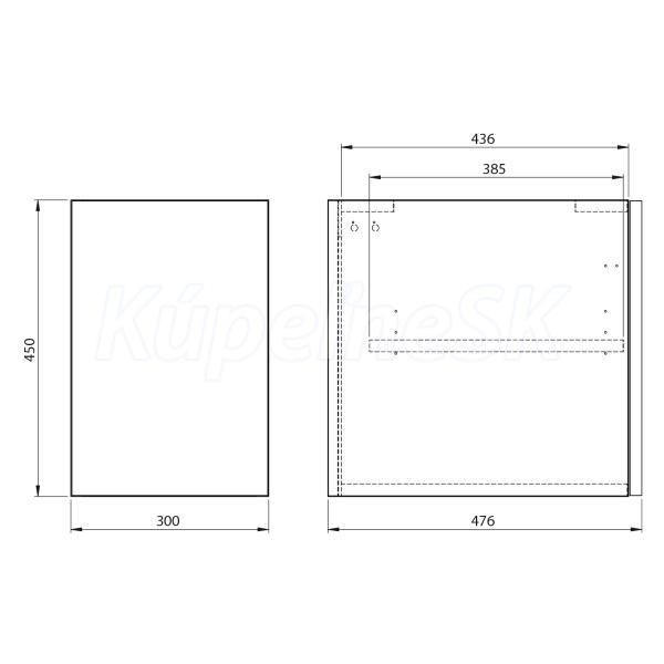 >> Kúpeľňový nábytok >> Bočné-Spodné skrinky >> Sapho WAVE skrinka spodná dvierková 30x45x47,8cm, pravá/ľavá, biela/dub collingwood