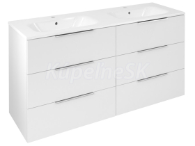 Sapho CIRASA umývadlová skrinka s dvojitým umývadlom 141x77x46cm, 3x zásuvka, biela lesk C