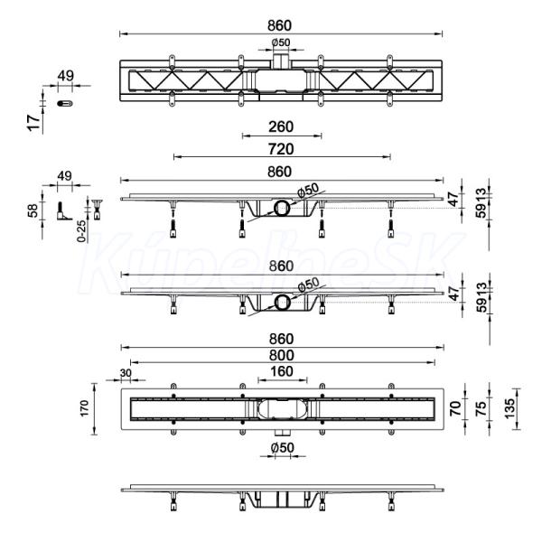 Odtokový žľab KLASSZIK - 800: ROZMER A roštu 80 cm, dĺžka žľabu 86 cm (možnosť vloženia dlažby)