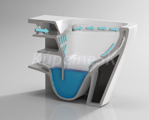 Systém RIMLESS je revolučný bezokruhovým splachovaním exkluzívne u tohto závesného wc . Tradičné WC záchody majú pod okrajom veľmi ťažko prístupné miesta, v ktorých sa zhromažďujú nečistoty a baktérie. vnútorné plochy misy a ľahko sa tiež dostane ku všetkým vnútorným plochám, misa je tak vždy dokonale čistá.