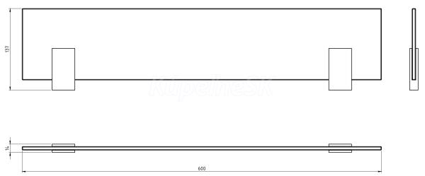 kategória distribúcie Novaservis: Koupelnové doplňky | Poličky skleněné. Rozmer skla 600 x 120 mm. Sklo číre sila 6 mm.