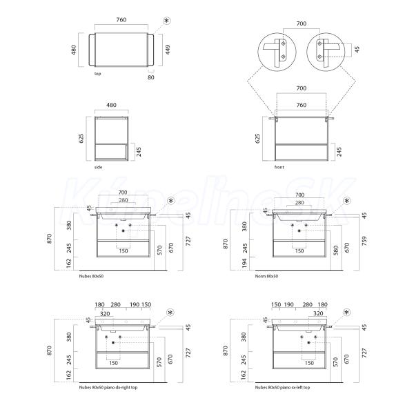 GSI NUBES/NORM konštrukcia pod umývadlo 80x50cm, čierna mat/orech