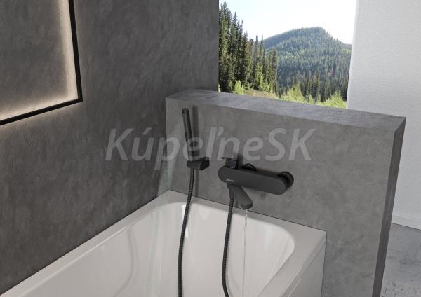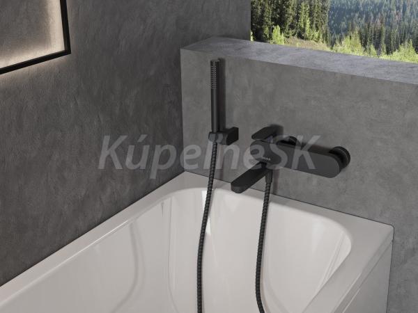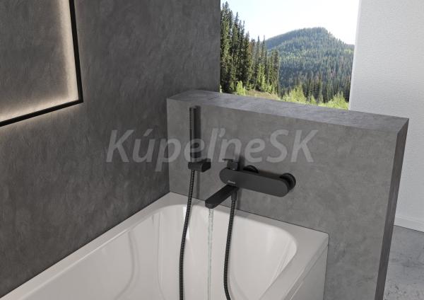 Nástenná vaňová batéria Chrome s otočným prepínacím ramienkom, bez sprchového setu. V čiernom prevedení. Do vypredania zásob.