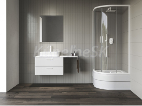 Znížený štvrťkruhový sprchový kút Blix II má výšku iba 1800 mm a je tak pripravený na namontovanie hlbokej sedacej vaničky Sabina. Táto kombinácia predstavuje unikátne a priestorovo nenáročné riešenie kúpania aj sprchovania pri nedostatku miesta. Akrylátová vanička hlboká 27 cm do tohto spojenia prináša dostatok miesta na kúpanie detí alebo na namáčanie prádla aj pohodlné sedátko. Montuje sa do obloženého rohu kúpeľne na hlbokú vaničku Sabina.