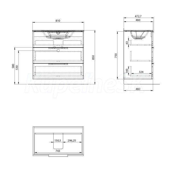 ZnačkaSAPHO SériaCIRASA 3D modelÁNO Rozmer79,8x75x46 cm Šírka798. mm Výška750. mm Hĺbka46