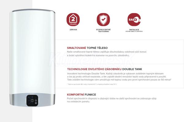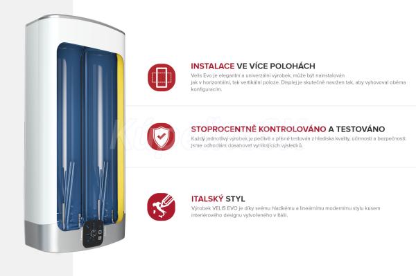Ariston VELIS EVO 80, kód 3626146, Ohrievače vody | Elektrické ohrievače vody | Ploché | 80 litrov Stredný elektrický ohrievač vody s objemom 80 l. Kompaktný, plochý na vertikálnu aj horizontálnu inštaláciu. Digitálne ovládanie a plánovanie ohrevu.