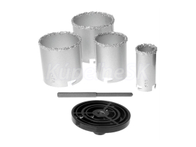 Omlouvám se, ale nevidím žádný text k překladu. Pokud chcete text přeložit, prosím, vložte jej. sada vykružovacích koruniek korunka s karbidovým ostrím pre čisté a presné vŕtanie priemery koruniek: 33; 53; 67; 73 mm univerzálny ALU unášač špeciálny vodiací vrták v sade 6 ks