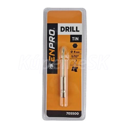 vrták na sklo a keramiku ENPRO 4-čepeľový s oceľovým telom a karbidovými doštičkami povrstvenými titánom stopka tvaru šesťuholníka použitie: na sklo a keramiku balenie: jeden kus v blistri