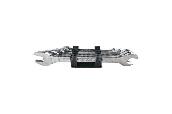 obojstranné kľúče s otvoreným koncom - sada 6 kusov vyrobené kovaním z vysoko kvalitnej CrV ocele rozmery kľúča: 6x7; 8x9; 10x11; 12x13; 14x15; 16x17 mm súprava sa dodáva na plastovom držiaku DIN 3110