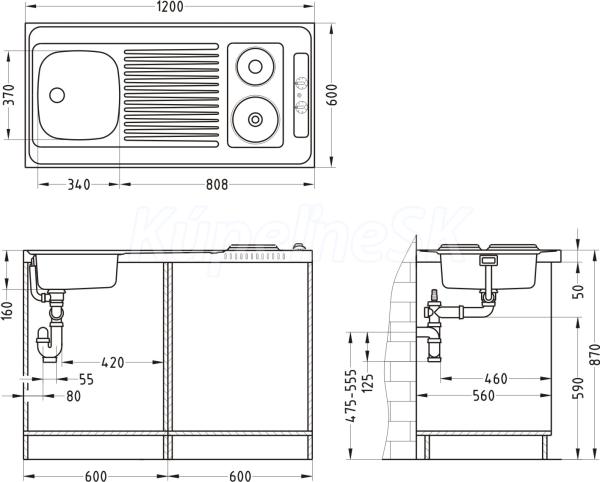 Rozmer balenia (mm): 1250x530x190 nástavný nerezový dřez s plotýnkami