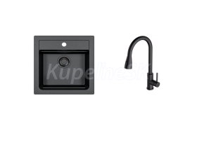 Alveus SET ALVEUS ATROX 20 / 91 BLACK ADDITION + BATERIE PRIMROSE 91 Vstavaný drez, univerzál. Prevedenie: granitový drez Vonkajší rozmer: 470 x 500 mm Rozmer vaničky: 390 x 340 x 195 mm Sitkový ventil v čiernom prevedení 3 1/2 s prepadom, sifón pre úsporu miesta s odbočkou na umývačku Úchyty a tesnenia na upevnenie drezu v balení S otvorom pre batériu Predfrézované dva otvory Návod na inštaláciu v obrázkoch na obale Inštalácia do skrinky pri montáži: I- o šírke 450 mm, U- o šírke 600 mm Váha: 9,7 kg Rozmer balenia (mm): 598x584x263 Batéria PRIMROSE Vysokotlaká batéria vytahovací, sprcha rozměr:210x435 mm provedení: čeerna matná Váha: 1,15 Kg Vestavěný dřez, univerzál. Provedení : granitový dřez Vnější rozměr: 470 x 500 mm Rozměr vaničky: 390 x 340 x 195 mm Sítkový ventil v černém provedení 3 1/2 s přepadem, sifon pro úsporu místa s odbočkou na myčku Úchyty a těsnění pro upevnění dřezu v balení S otvorem pro baterii Předfrézované dva otvory Návod pro instalaci v obrázcích na obale Instalace do skříňky při montáži: I- o šířce 450 mm, U- o šířce 600 mm Váha: 9,7 kg Rozměr balení (mm): 598x584x263 Baterie Primrose Vysokotlaká baterie vytahovací, sprcha rozměr:210x435 mm provedení: černá matná Váha: 1,15 Kg