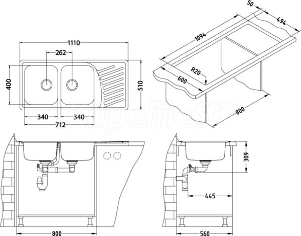 Váha: 6,67 kg Vestavěný dřez , dvě vaničky s odkapní plochou