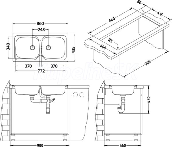 Alveus BASIC 70, 860x435 F Vstavaný drez, s dvoma vaničkami