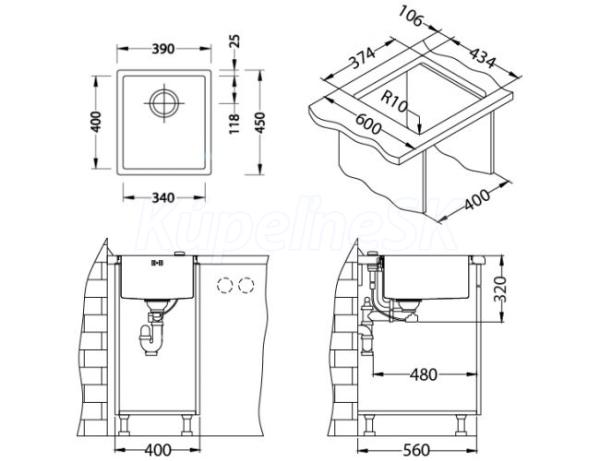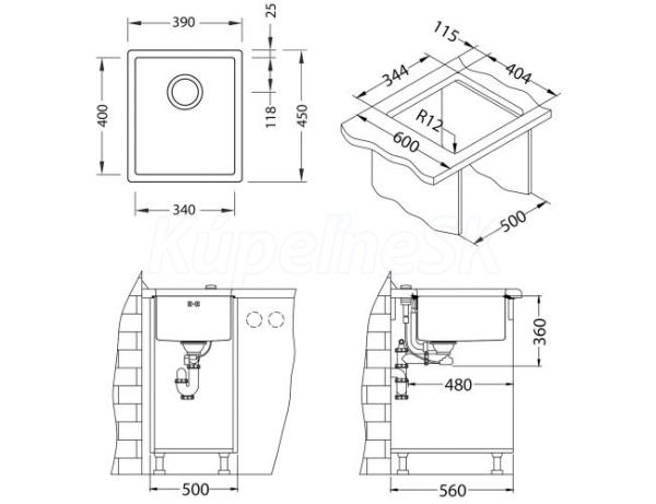 Instalace do skříňky o šířce 450 mm Vestavěný dřez, univerzal