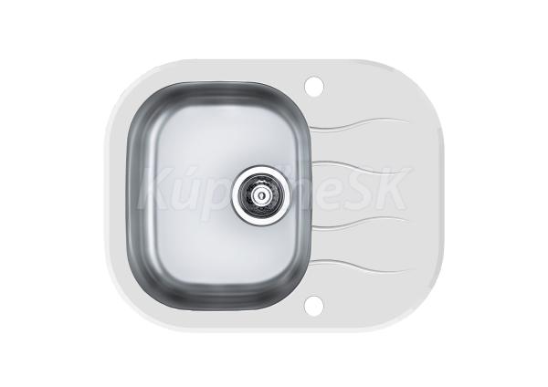 Alveus WAVE 10 vstavaný nerez/sklo drez 620x500x175 mm,odkvap. plocha,Satin/Biela+sifón