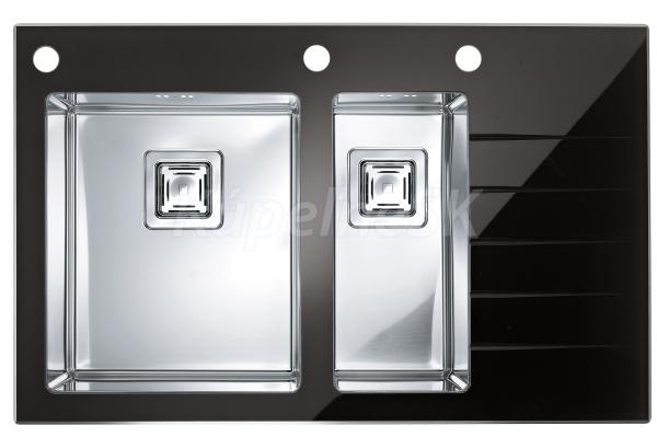 Alveus CRYSTALIX 20 vstavaný nerez/sklo drez 860x540x200 mm,vanička vľavo,Satin/Čierna