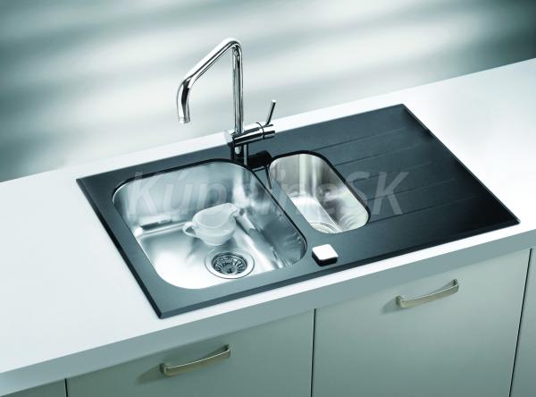 Alveus GLASSIX 20 vstavaný nerez/sklo drez 860x500x180mm,1 a 1/5 vaničky,Satin/Čierny+sif