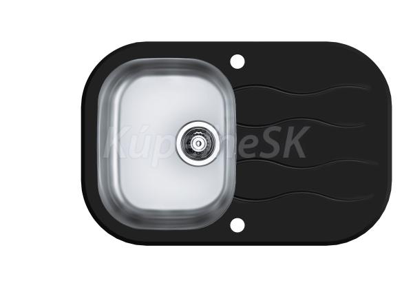 Alveus WAVE 20 F Vstavaný nerez/sklo drez 760x500x175mm,odkvap. plocha Satin/Čierna+sifón