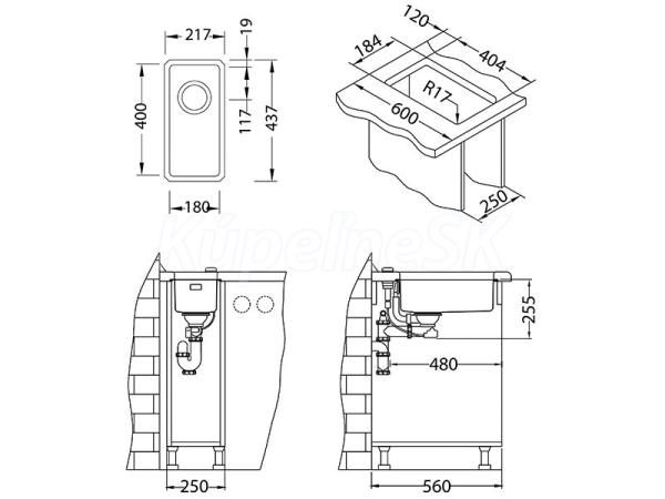Inštalácia do skrinky so šírkou 300 mm Dřez se spodní motnáží, univerzál.