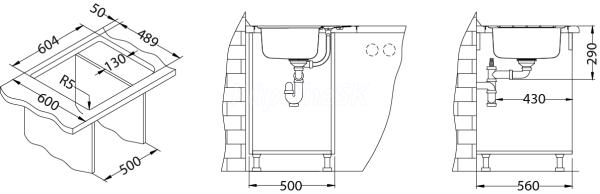 Inštalácia do skrinky so šírkou 500 mm Plně vestavěný dřez, UNIVERZÁL