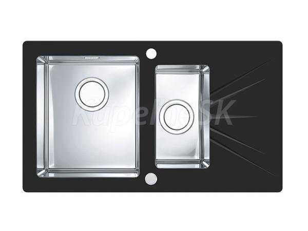 Alveus KARAT UP 20 Ľavý vstavan nerez/sklo drez 860x500x195mm,2 vaničky vľavo,Čiernyasifón