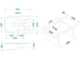 >>  KUCHYNE - Kuchynský tovar  >>  Kuchynské drezy  >>  Sklenené drezy  >>  Alveus Wave UP 30 vstavaný nerez/sklo drez 760x500x175 mm,univerzálny,Biely+sifón