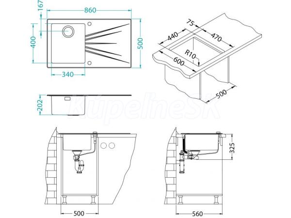 >>  KUCHYNE - Kuchynský tovar  >>  Kuchynské drezy  >>  Nerezové drezy  >>  Alveus KARAT UP 10 Pravý vstavaný nerez/sklo drez 860x500x195mm,vanička vpravo,Bielyasifón